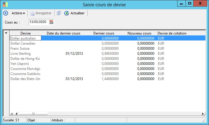 Saisie cours de devise