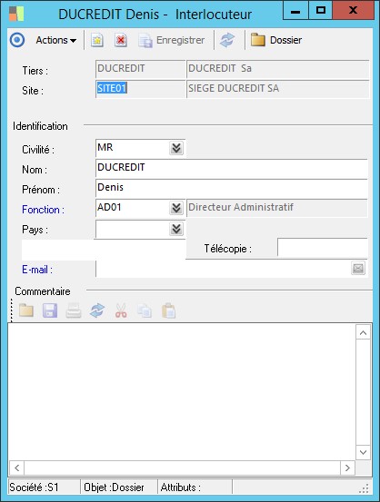 Site auquel l'interlocuteur est rattaché. |