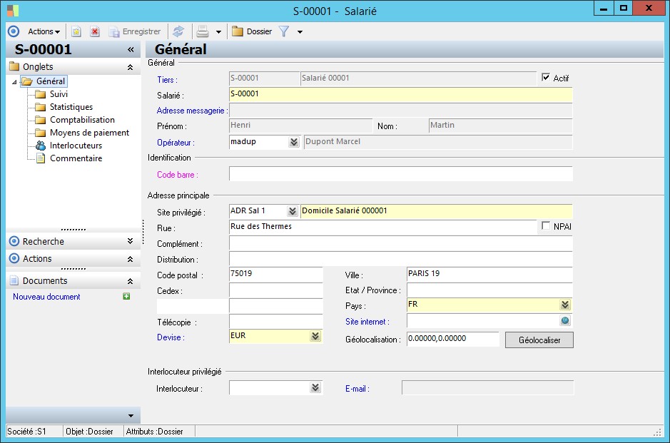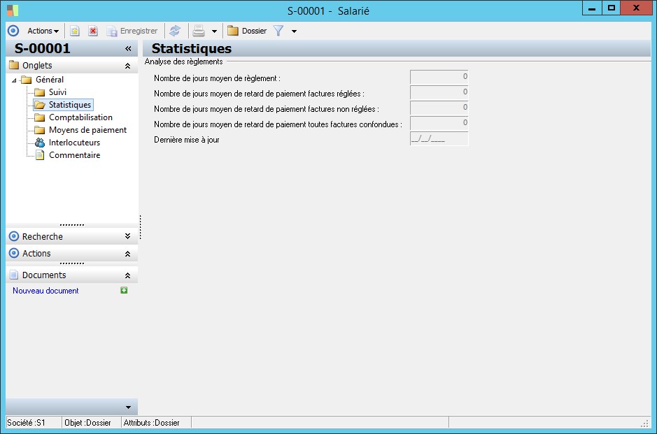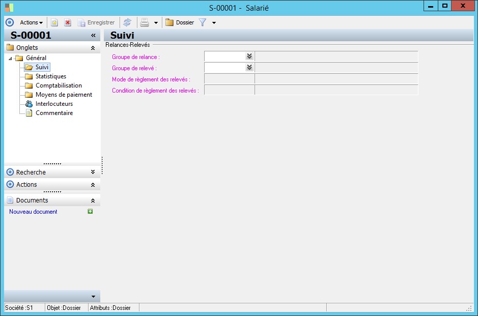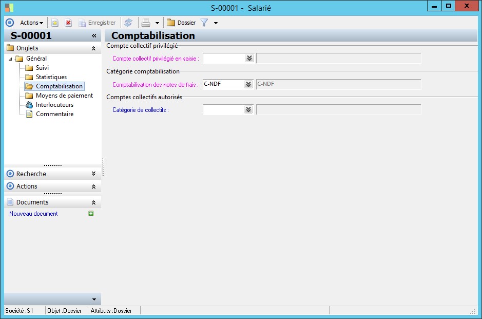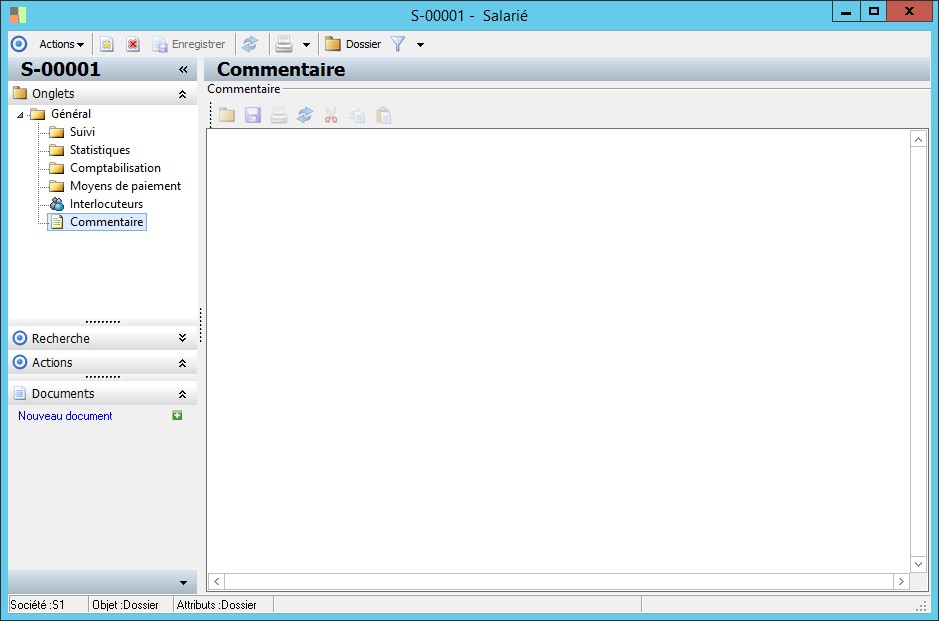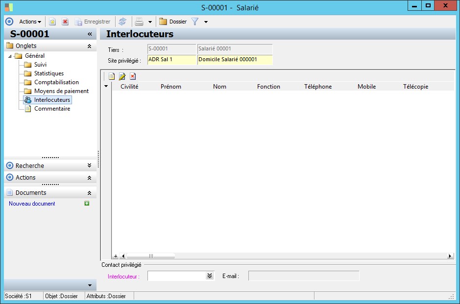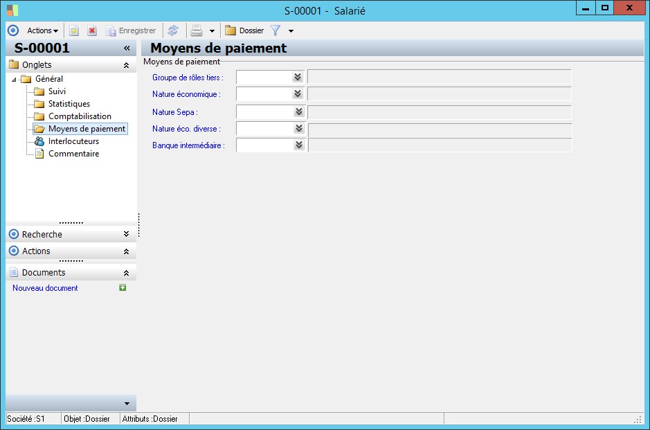 Dans la fenêtre Salariés , la présence des dossiers décrits dans ce contexte dépend des applications installées. |