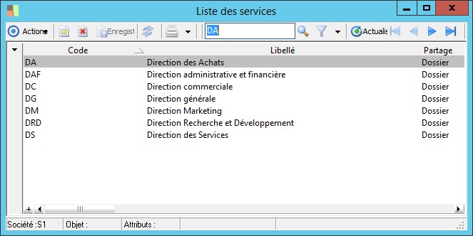 Cette liste est ouverte par la fonction Paramètres / Société / Services .