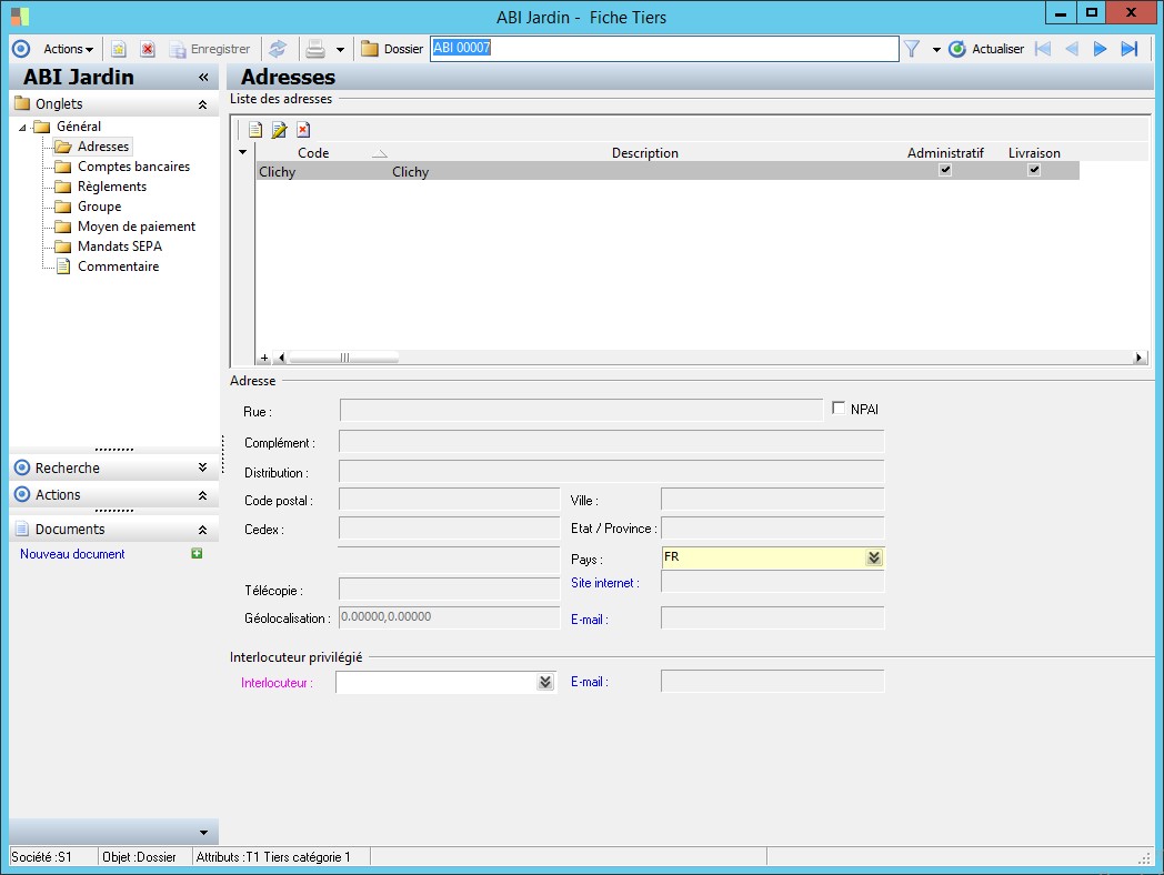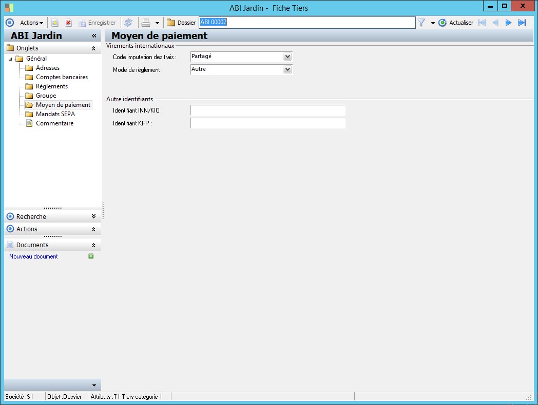 Dans la fenêtre Fiche Tiers, la présence des fonctions décrites dans ce contexte dépend des applications installées. |