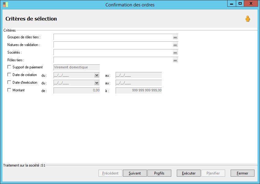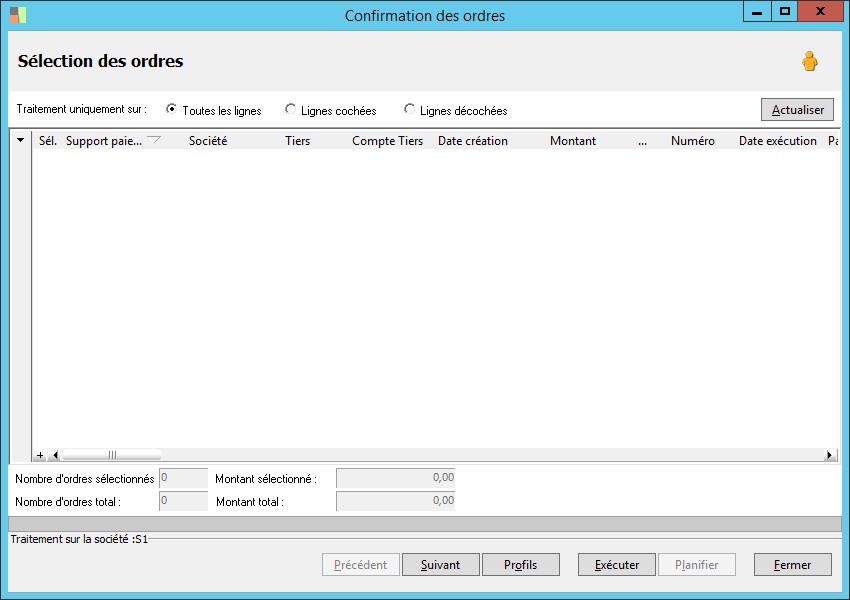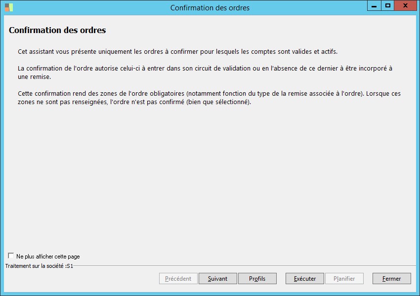 (Sage FRP 1000 Banque Paiement) Menu Banque Paiement > Ordres bancaires > Confirmation des ordres
