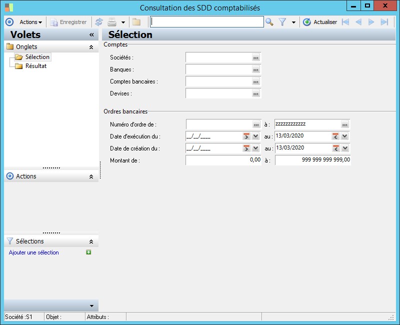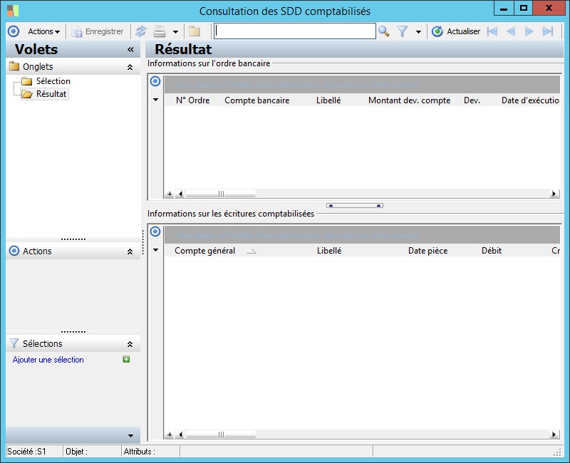(Sage FRP 1000 Banque Paiement) Menu Banque Paiement > Comptabilisation > Consultation des SDD comptabilisés