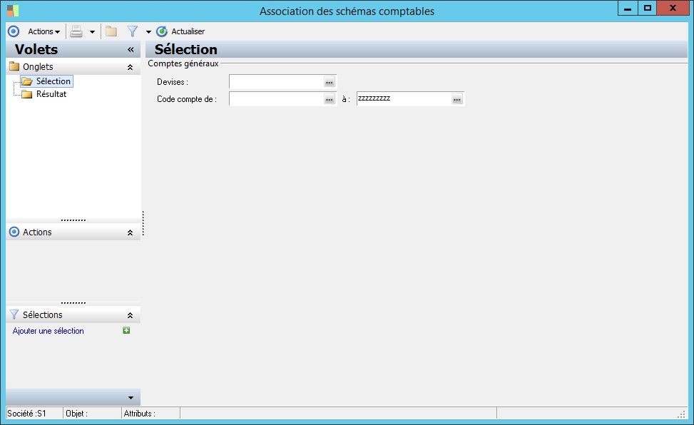Borne inférieure pour sélection des codes de comptes généraux |