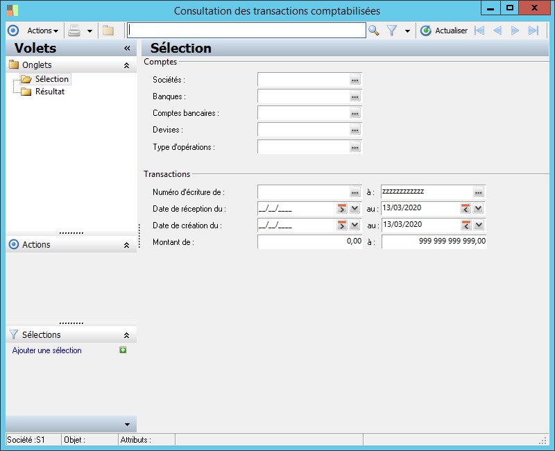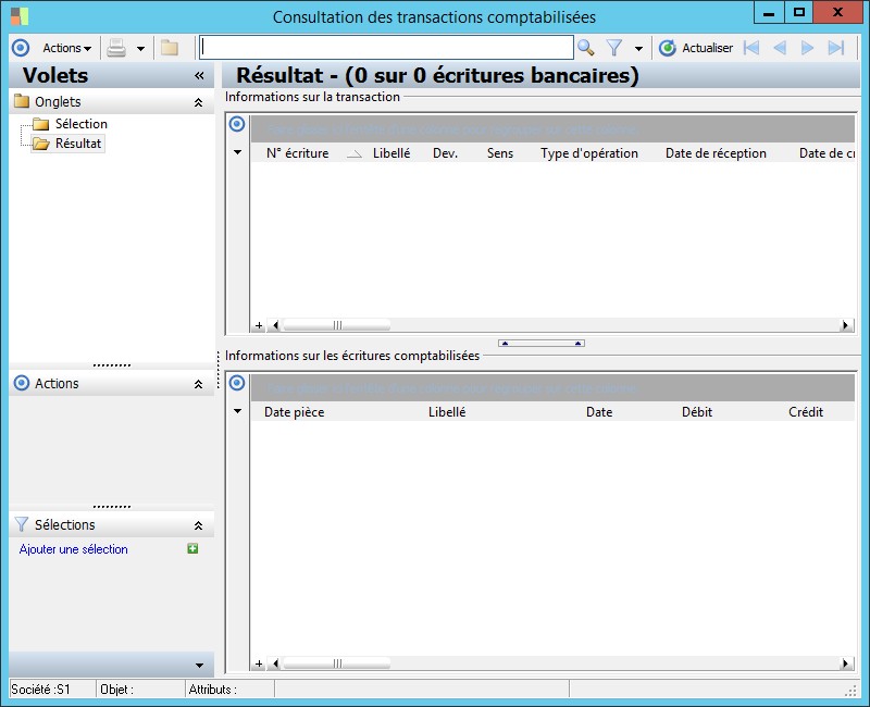 (Sage FRP 1000 Banque Paiement) Menu Banque Paiement > Comptabilisation > Consultation des transactions comptabilisées
