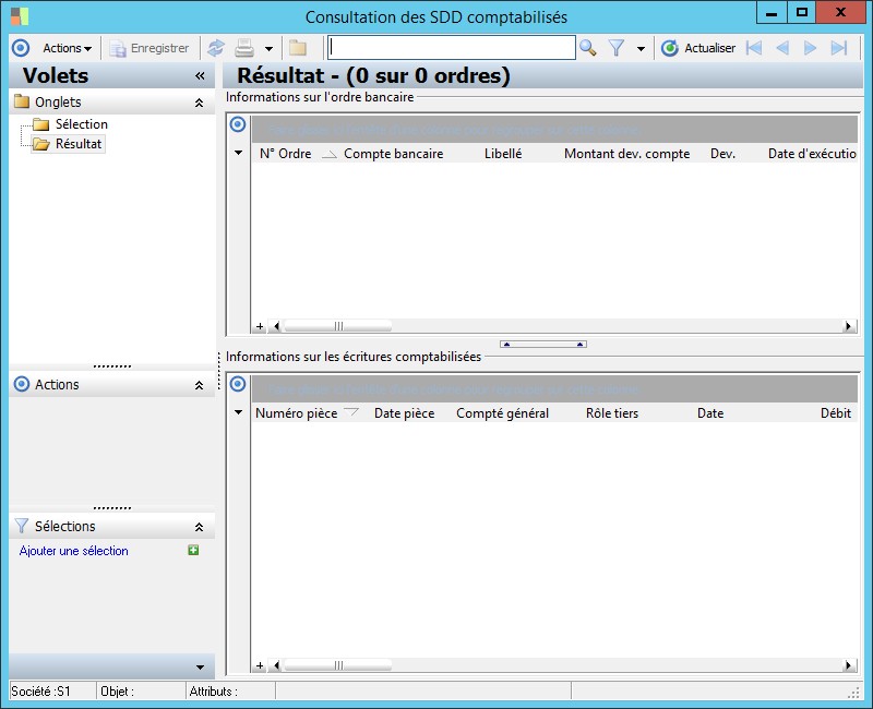 (Sage FRP 1000 Banque Paiement) Menu Banque Paiement > Comptabilisation > Consultation des SDD comptabilisés