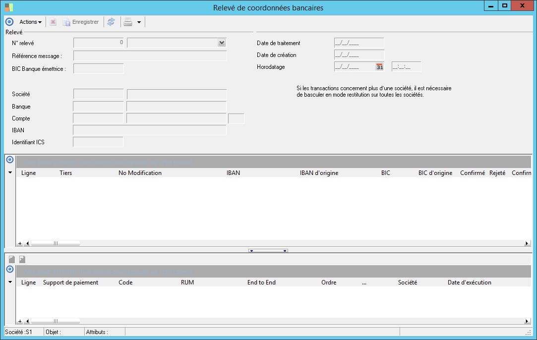 (Sage FRP 1000 Banque Paiement) Menu Banque Paiement > Relevés et Notifications > Relevés de coordonnées bancaires > Relevé de coordonnées bancaires