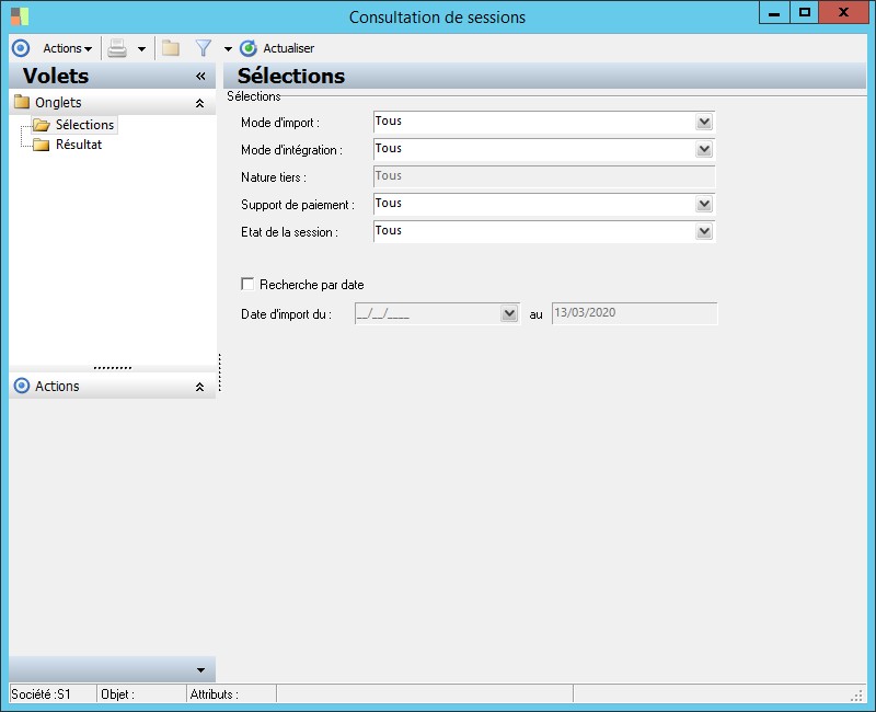 (Sage FRP 1000 Banque Paiement) Menu Banque Paiement > Ordres bancaires > Consultation de sessions