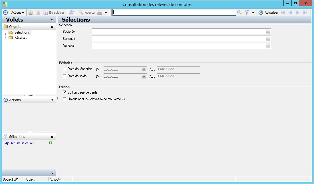 (Sage FRP 1000 Banque Paiement) Menu Banque Paiement > Relevés et Notifications > Relevés de comptes > Consultation des relevés de comptes