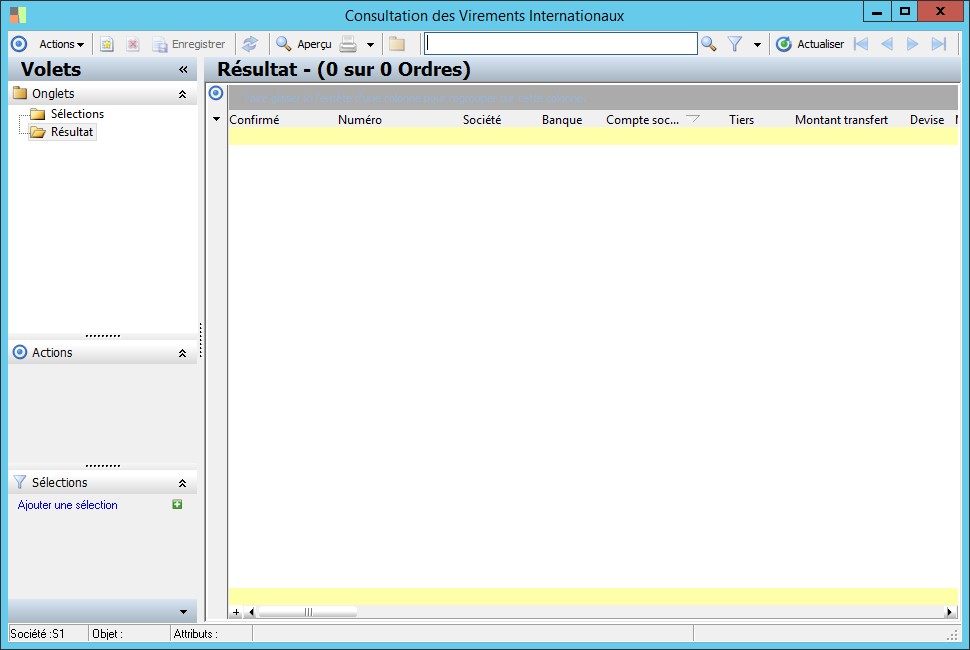(Sage FRP 1000 Banque Paiement) Menu Banque Paiement > Ordres bancaires > Consultation des ordres par type > Consultation des Virements Internationaux