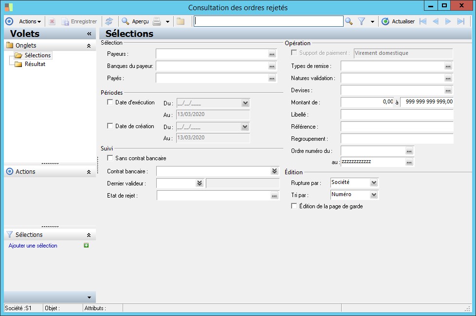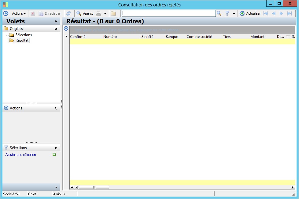 (Sage FRP 1000 Banque Paiement) Menu Banque Paiement > Ordres bancaires > Consultation des ordres rejetés