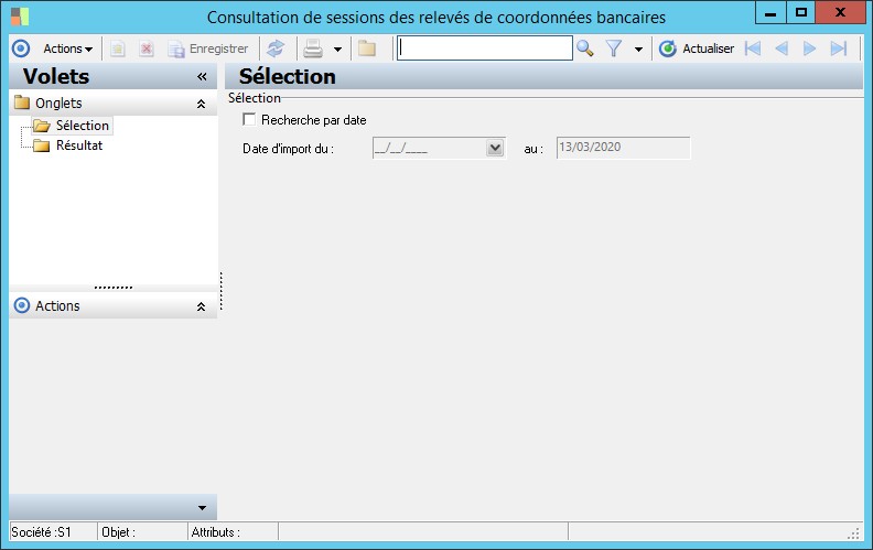 (Sage FRP 1000 Banque Paiement) Menu Banque Paiement > Relevés et Notifications > Relevés de coordonnées bancaires > Consultation de sessions des relevés de coordonnées bancaires