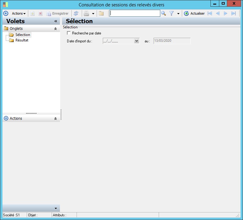 Ecran de recherche par critères de dates d'import. |