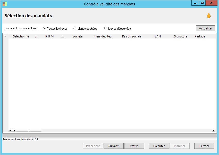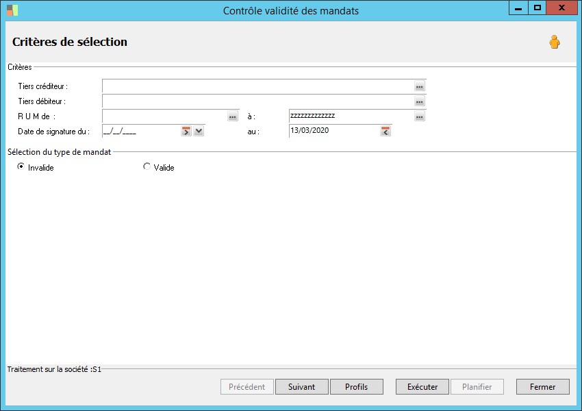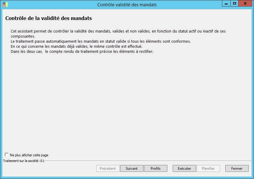 (Sage FRP 1000 Banque Paiement) Menu Banque Paiement > Paramètres > Tiers > Contrôle validité des mandats