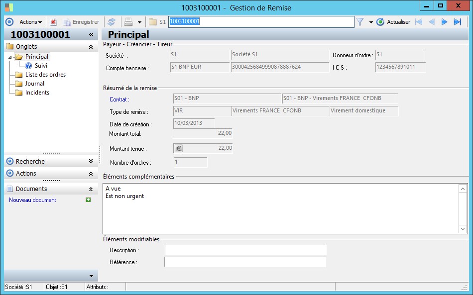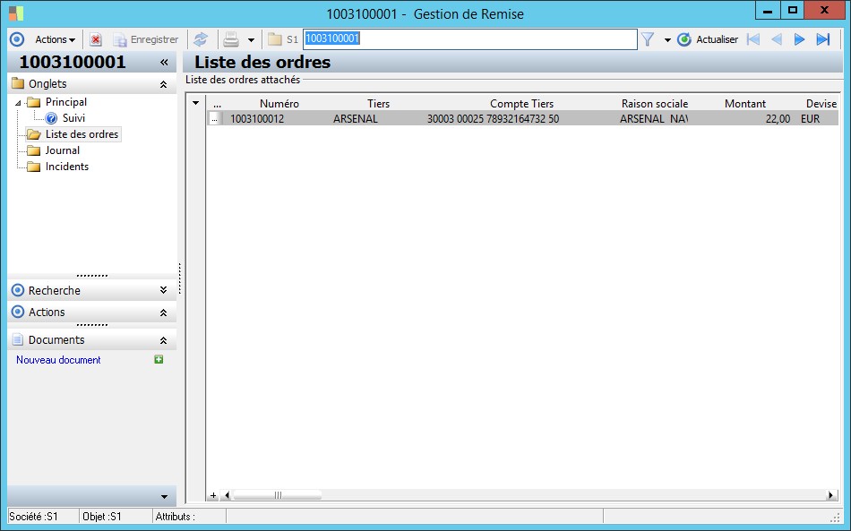 (Sage FRP 1000 Banque Paiement) Menu Banque Paiement > Ordres bancaires > Gestion de Remise