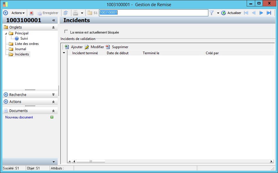 Cette information indique que la remise est bloquée du fait de l'existence d'incidents non terminés. |