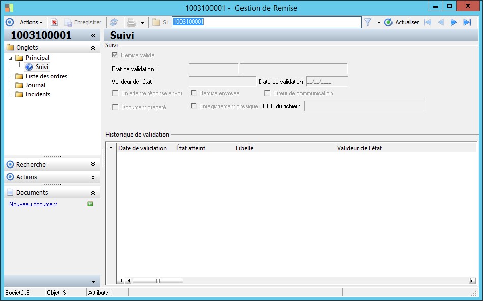 Cette information indique que le document de la remise a été préparé.la remise possède une règle de validation (et donc un circuit), le document est préparé à la validation du premier état. Lorsque la remise ne possède pas de règle de validation, le document est préparé à l'envoi de la remise.d'ordres à une remise avec un document préparé est impossible sauf réinitialisation de celle-ci. suppression d'une remise avec un document préparé n'est possible que dans le cadre du traitement d'épuration. |