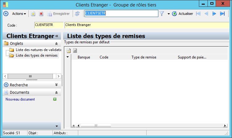 (Sage FRP 1000 Banque Paiement) Menu Banque Paiement > Paramètres > Ordres et remises bancaires > Groupe de rôles tiers