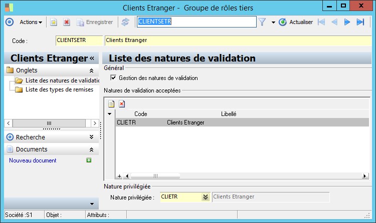 Gestion des natures de validation |