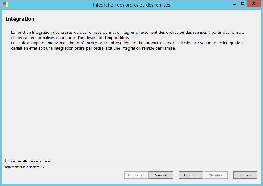 (Sage FRP 1000 Banque Paiement) Menu Banque Paiement > Relevés et Notifications > Relevés L.C.R. à payer > Intégration des ordres ou des remises