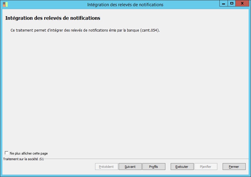 (Sage FRP 1000 Banque Paiement) Menu Banque Paiement > Relevés et Notifications > Relevés de notifications > Intégration des relevés de notifications
