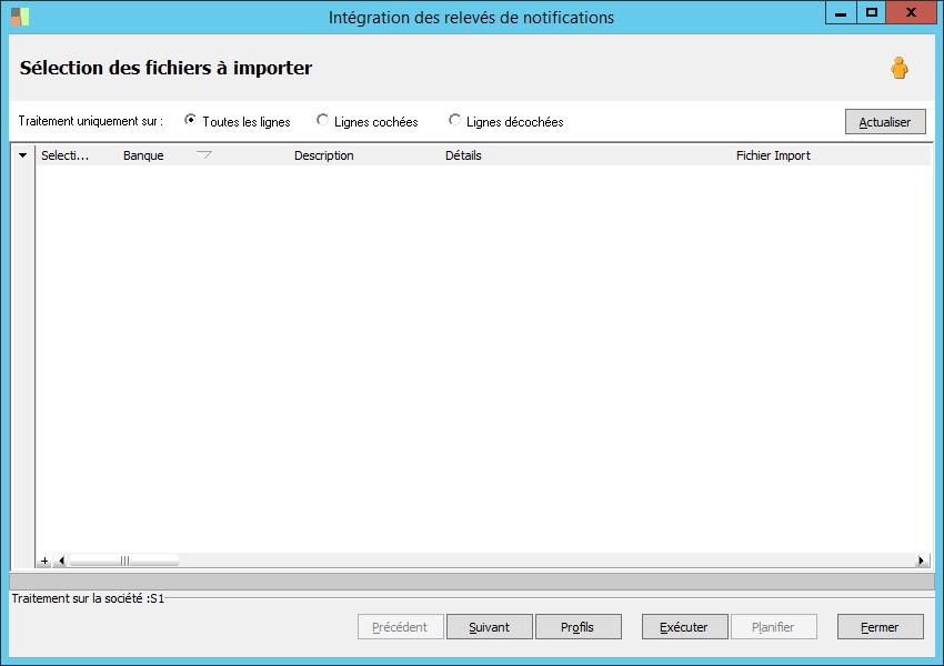 Indicateur de traitement sur plusieurs banques à partir d'un fichier unique envoyé par la banque. |