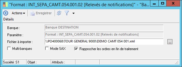 (Sage FRP 1000 Banque Paiement) Menu Banque Paiement >  Relevés et Notifications >  Relevés divers >  Détail du paramètre d'importation de relevés bancaires