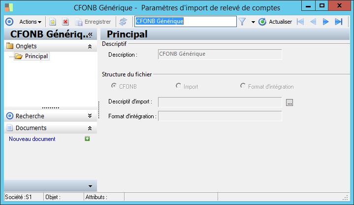 Permet de définir la nature du traitement : CFONB (Générique), Importation ou Intégration (Format d'intégration). |