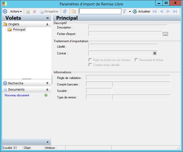 (Sage FRP 1000 Banque Paiement) Menu Banque Paiement > Paramètres > Paramètres d'import de Remise Libre