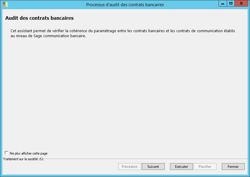 (Sage FRP 1000 Banque Paiement) Menu Banque Paiement > Paramètres > Processus d'audit des contrats bancaires