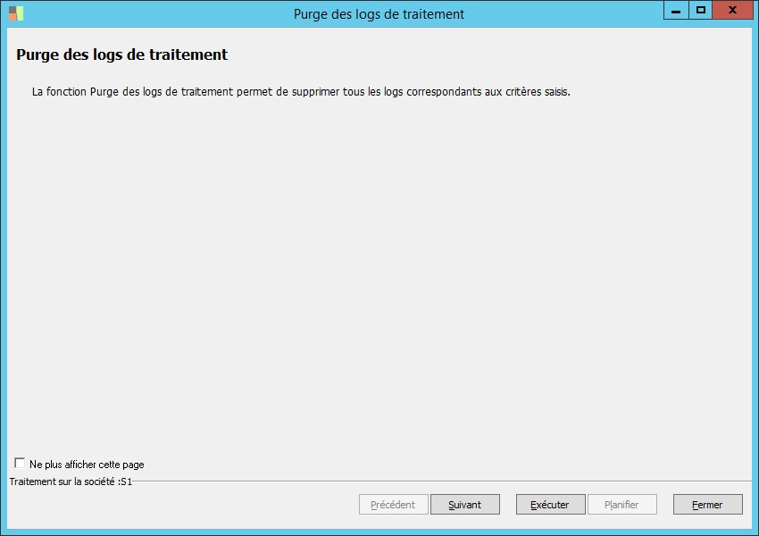 (Sage FRP 1000 Banque Paiement) Menu Banque Paiement > Outils > Purge des logs de traitement