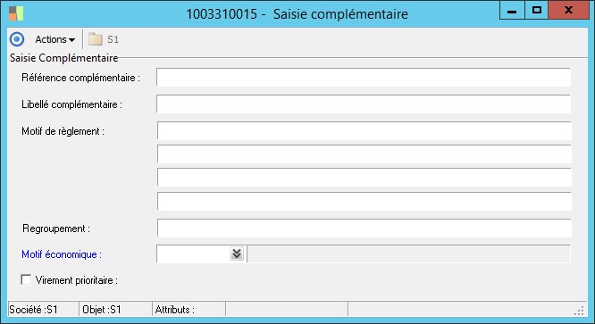 (Sage FRP 1000 Banque Paiement) Menu Banque Paiement > Ordres bancaires > Saisie complémentaire