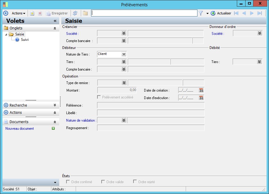 (Sage FRP 1000 Banque Paiement) Menu Banque Paiement > Ordres bancaires > Prélèvements