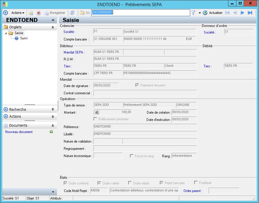 Cette zone mentionne la nature SEPA pour lequel l'ordre est passé.