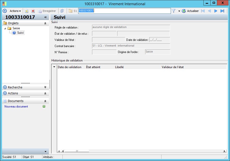 (Sage FRP 1000 Banque Paiement) Menu Banque Paiement > Ordres bancaires > Virement International