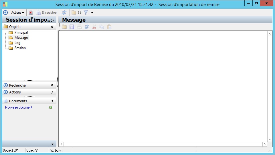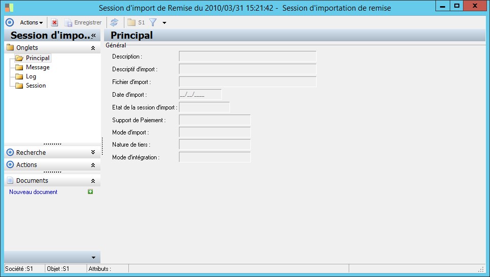 (Sage FRP 1000 Banque Paiement) Menu Banque Paiement >  Ordres bancaires >  Session d'importation de remise