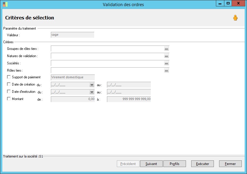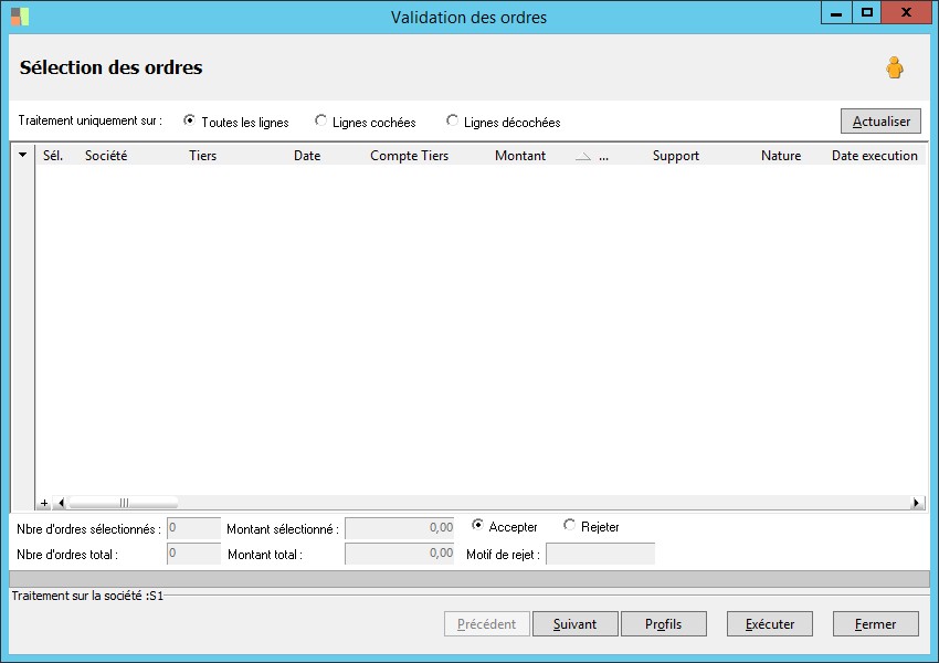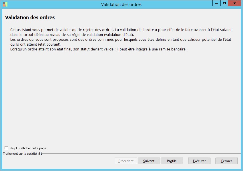 (Sage FRP 1000 Banque Paiement) Menu Banque Paiement > Ordres bancaires > Validation des ordres
