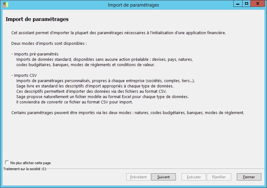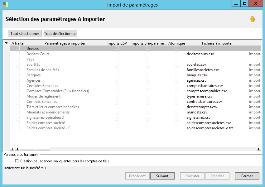 (Sage FRP 1000 Banque Paiement) Menu Banque Paiement > Initialisation > Import de paramétrages