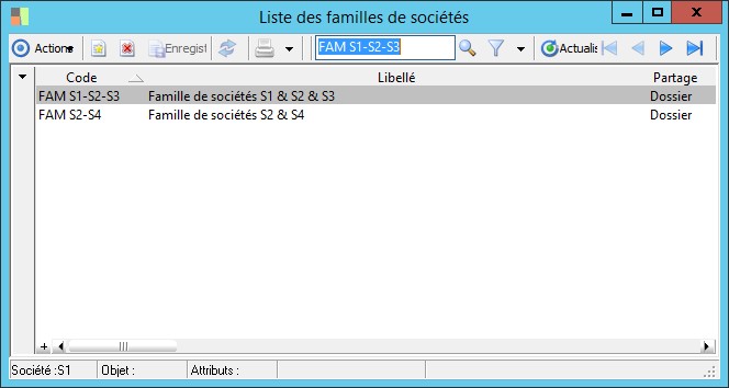 (Sage FRP 1000 Banque Paiement) Menu Banque Paiement > Paramètres > Familles > Liste des familles de sociétés