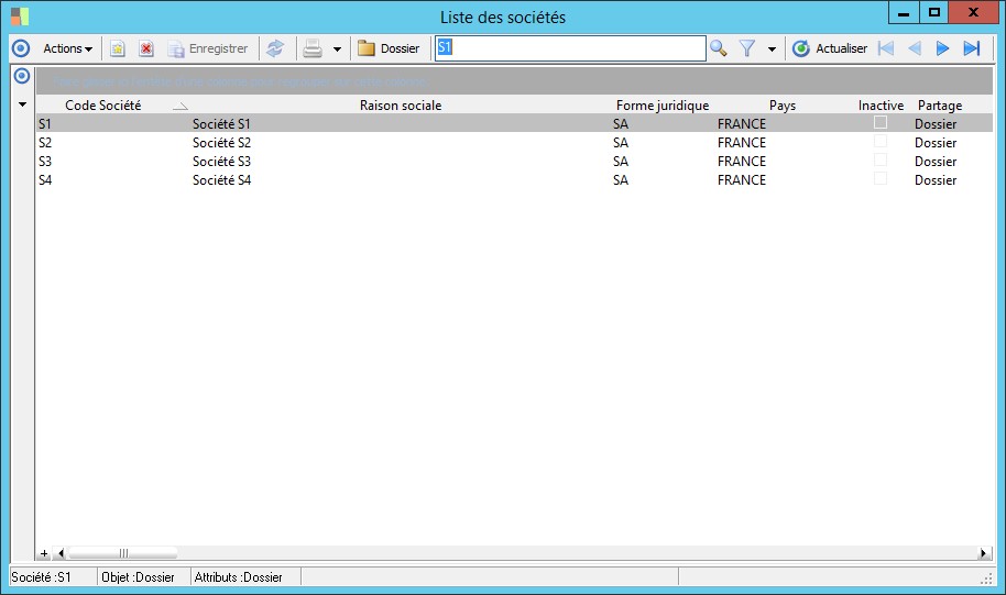 (Sage FRP 1000 Banque Paiement) Menu Banque Paiement > Paramètres > Sociétés > Liste des sociétés