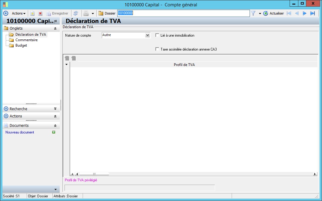 - pour un compte de Hors taxe : la base de TVA, le type de TVA et les profils de TVA associés,