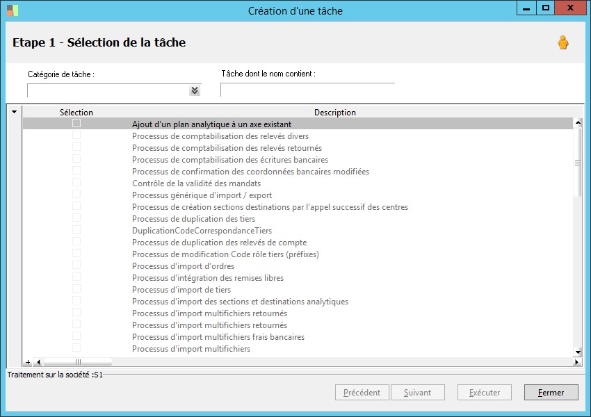 (Sage FRP 1000 Banque Paiement) Menu Banque Paiement > Outils > Création d'une tâche