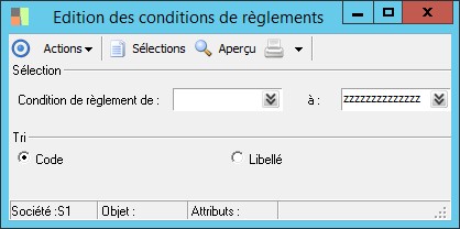 (Sage FRP 1000 Banque Paiement) Menu Banque Paiement > Paramètres > Règlements > Edition des conditions de règlements