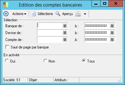 Indiquer le niveau d'activité des comptes bancaires sélectionnés. Il est possible d'éditer que les comptes actifs, que les comptes inactifs ou tous les comptes.