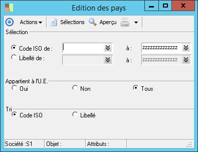 (Sage FRP 1000 Banque Paiement) Menu Banque Paiement > Paramètres > Paramètres > Edition des pays