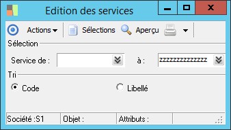 (Sage FRP 1000 Banque Paiement) Menu Banque Paiement > Paramètres > Sociétés > Edition des services