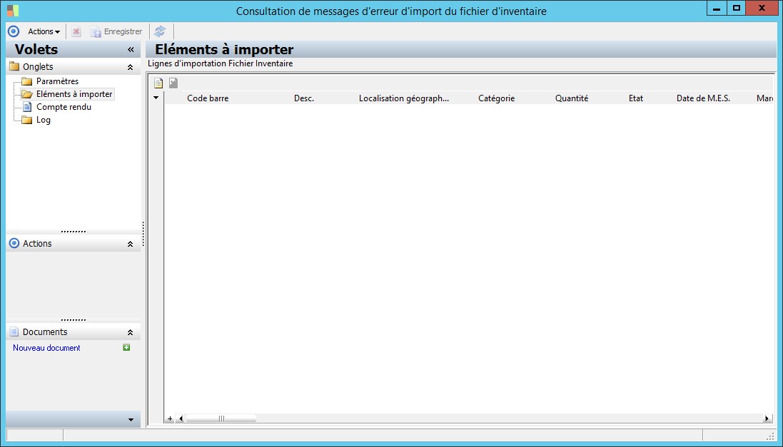 (Sage FRP 1000 Comptabilité) Menu Immobilisations > Initialisation > Import du suivi physique > Consultation de messages d'erreur d'import du fichier d'inventaire