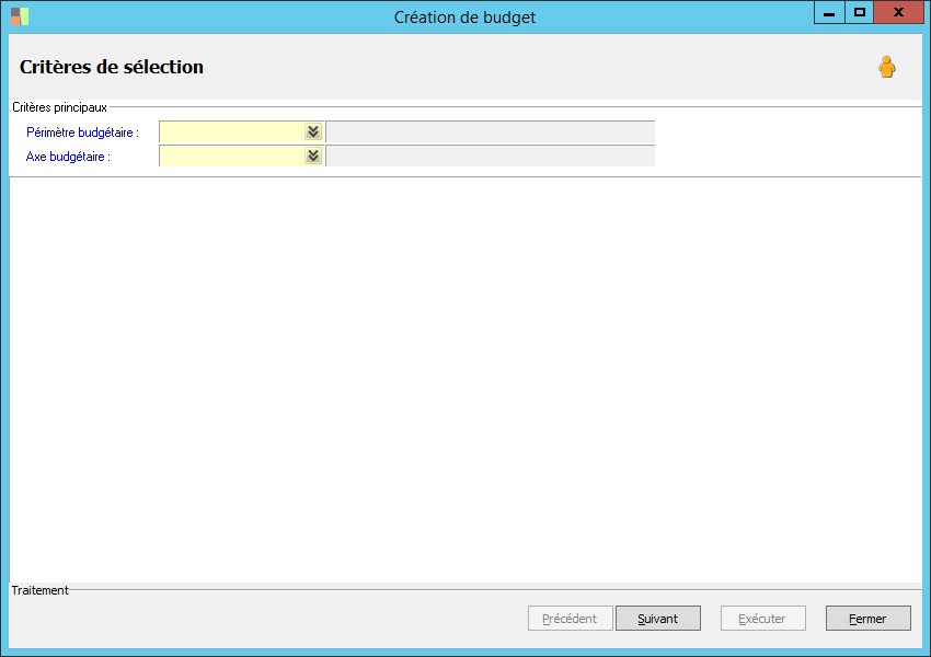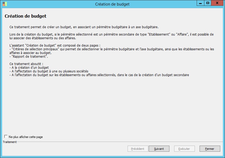 Cet assistant permet la création d'un budget, en associant un périmètre budgétaire à un axe budgétaire.