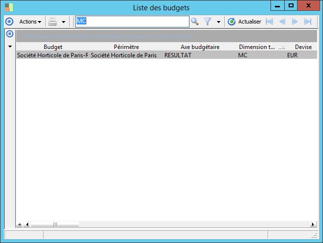 (Sage FRP 1000 Comptabilité) Menu Budget > Paramètres > Liste des budgets