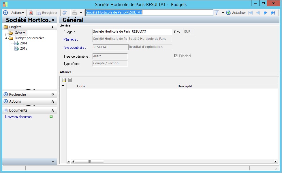 Le code identifie l'exercice de façon unique.Les exercices utilisent les périodes de la dimension temps préalablement créée.On peut avoir autant d'exercices que nécessaire, dans la limite de la dimension temps. |